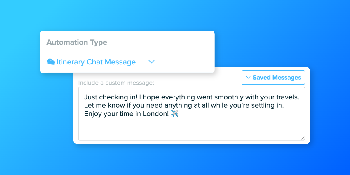 Timing is everything when sharing itineraries. With Travefy’s automated trip invites, you set it and forget it. Schedule the invite once, and it goes out at exactly the right time, with a personalized note. Plus, you can save your favorite messages to reuse later so you’re never writing the same thing twice.